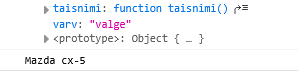 Kasutame ka console.log(), et konsoolis näita see objekt ja kõik omadused mis me kirjutasime.